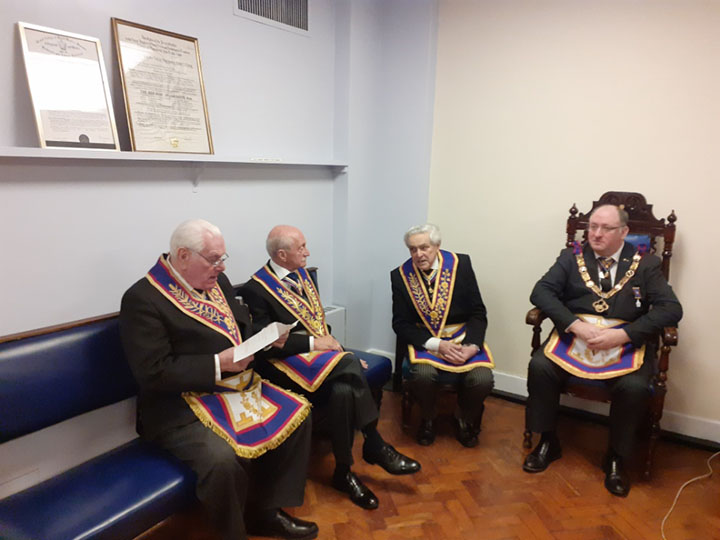 With the small number attending the meeting the Grand offices did not parade in, but took their places for the opening. Once the Worshipful Meeting had been opened; WBro Sandy, PProvGStdB, gave the salutations and then proclaimed WBro Bresnen Master of Tuscan Mark Lodge for the following year. With the new officers in place it was time for the addresses to be given. |