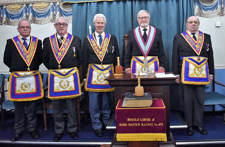 I was installed as Junior Warden and on examining the rear of my collar jewel saw that it was inscribed as having been presented in 1895 by the first J.W. of Bootle Mark Lodge. The fact that the lodge has been saved from possible erasure by adopting its present form means that this piece of history will live on. I am sure the original donor would be proud to see it still in use 127 years later albeit with Bootle Marl Lodge being somewhat different what he knew. |