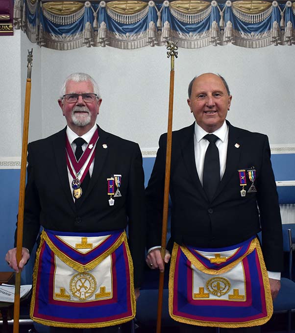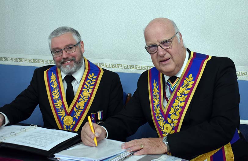 As a former director of ceremonies of the province David knows how to supervise ritual but actually performing it is a different matter, especially with so many other “experts” watching on. How did he do? The answer is superbly. David and Arthur have known each other for over a quarter of a century with Arthur having taken over as provincial director of ceremonies from David. Not only was the work, albeit a reduced ceremony, delivered accurately and at a nice pace but the connection between the pair meant there was genuine feeling in the delivery. It was a pleasure to bear witness to. |