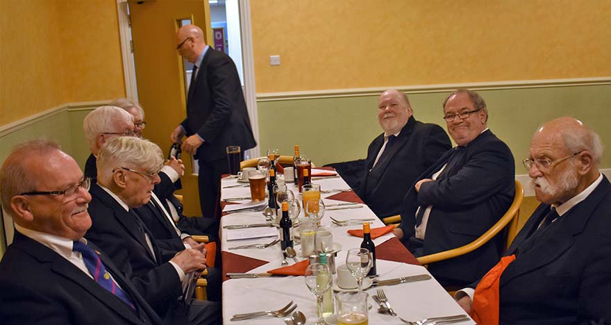 On his entrance into the lodge Malcolm had been accompanied by the special representative of the PGM Maurice Evans and grand officer Graham Corday. They were joined in the “posh seats” by fellow grand officer Keiron Mullan who was elected as a joining member on the evening. |