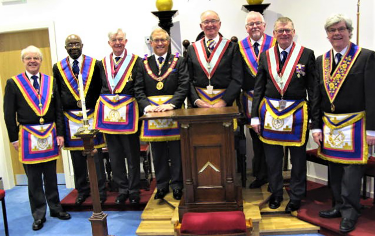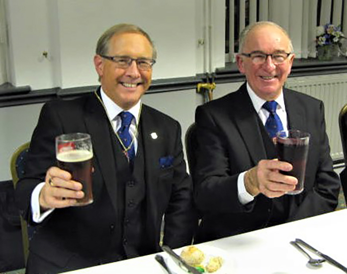 The lodge opened on time at 6pm and following a minutes silence in memory of W.Bro. Malcolm Jacobs PPrJGD who has recently passed to a Higher Service, the minutes from the last regular meeting were read and confirmed, the Lodge was then honoured to welcome W.Bro. Giles F Berkeley PGJD, Asst Prov Grand Master accompanied by the recently retired Prov DC W.Bro. David Emmerson PGSD, who is known like the old lager advert as “Simply the Best”, they along with other Grand and Prov Grand officers were welcomed to the meeting by the W.M. W.Bro. Graham T Bailey PGJD on behalf of all present. |