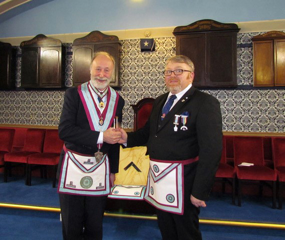 V.W.Bro. Derek Invested the Master with the Keystone and Hall stone Collaret’s and Bro. Alan Ledger presented working tools. |