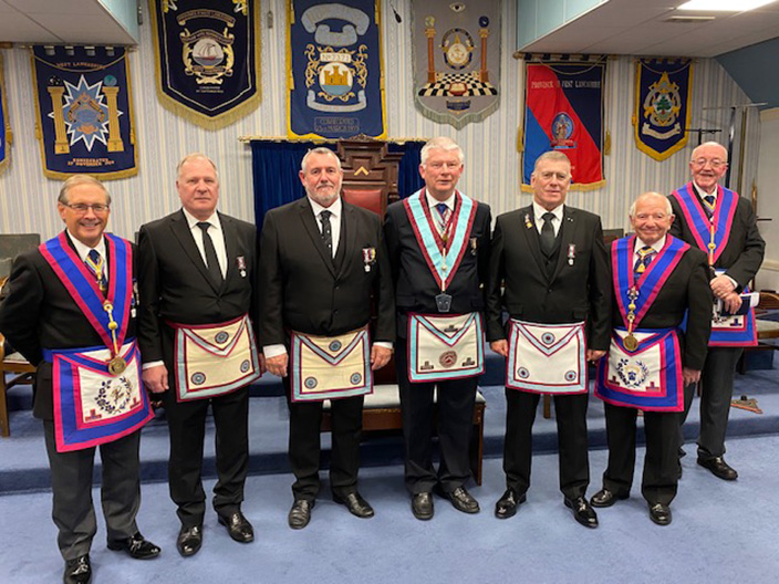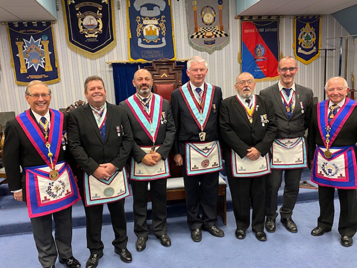 The first part of the ceremony was delivered by the Worshipful Master, with the Director of Ceremonies, W. Bro. Alan Fairhurst PAGDC stepping into the chair to do the second part, all achieved in a really excellent manner, the working tools were explained by the Worshipful Master of Wyre Mark Lodge 754, Brother Tom Egan, in the same immaculate way the rest of the ceremony had been delivered. |