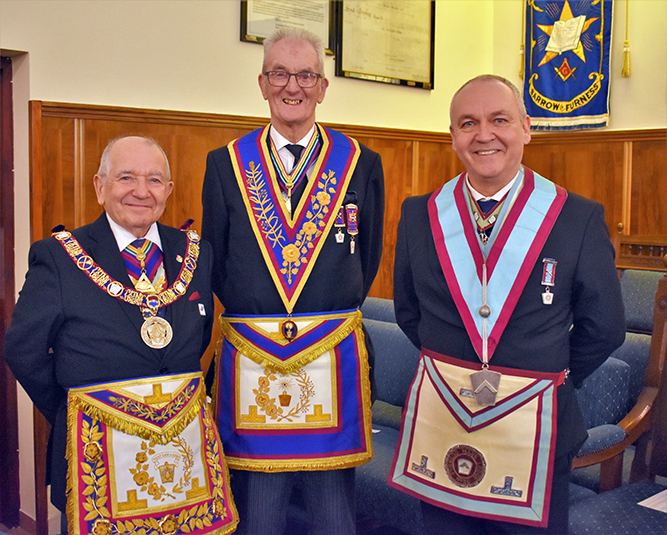 In what must be a unique event the latest meeting of Furness Mark Lodge No 36 witnessed the advancement of a candidate followed by the celebration of a 50th anniversary in the order. |