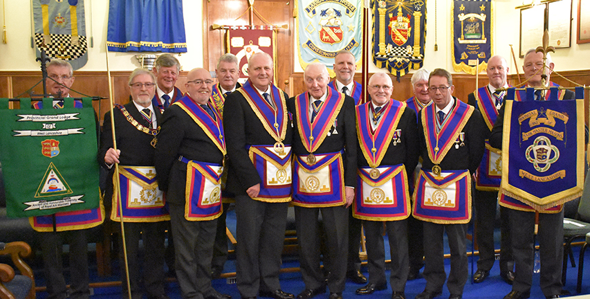 Amongst the 57 people in attendance were provincial organist David Tattersall who had added some welcome melody to proceedings. He is also the WM of Garnett Mark Lodge and was joined by fellow masters Chris Butterfield of Morecambe Mark Lodge, Harry Kilgour of Jubilee Mark Lodge, Alan Eastham of Philadelphia Mark Lodge and your northern correspondent who is in the chair of Walton Mark Lodge. |