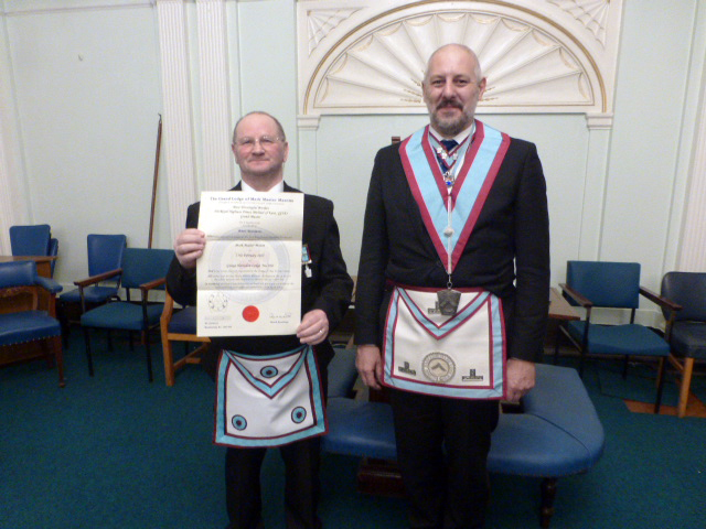 Then greetings were given to two members of the Lodge for the appointments they had received at the recent Provincial Grand Lodge meeting at Blackpool. WBro David Jones had been promoted to PPrGMO and WBro Jorge Perez received his appointment to PrGStwd. The Worshipful Master congratulated them both on his own behalf and from the members of the Lodge. |