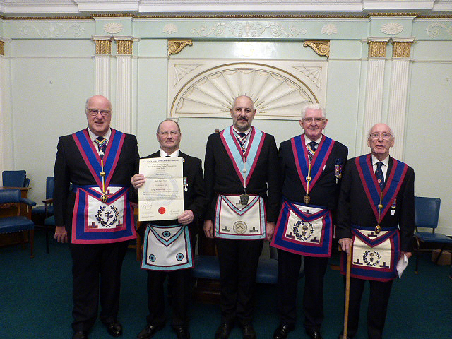 With all the chairs filled Worshipful Master, WBro Roger Boyle opened the meeting. With the meeting open, there was an ‘In Memoriam’ for RWBro Stephen Davison, Assistant Grand Master. WBro Steve Walls, PGSD, the Provincial Grand Master’s Special Representative gave his personal recollections of RWBro Stephen Davison. |