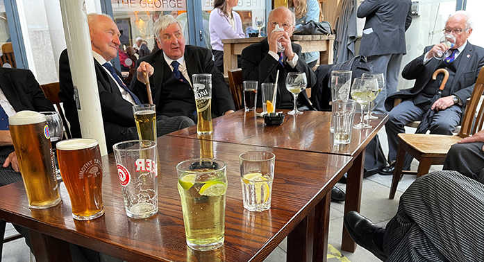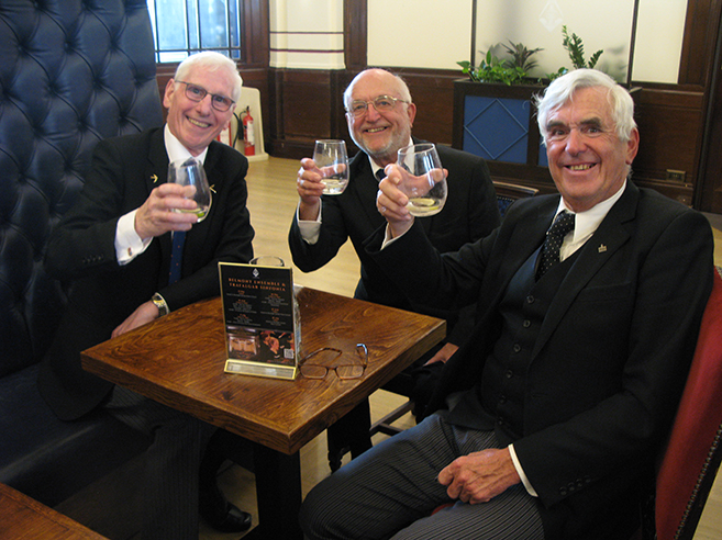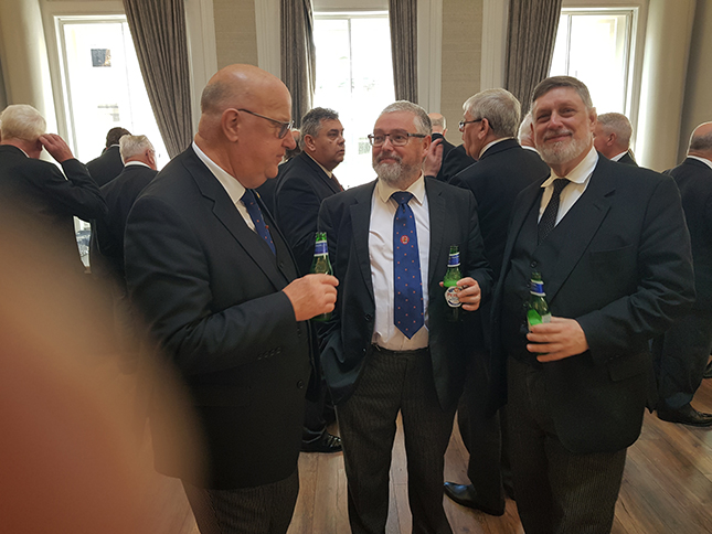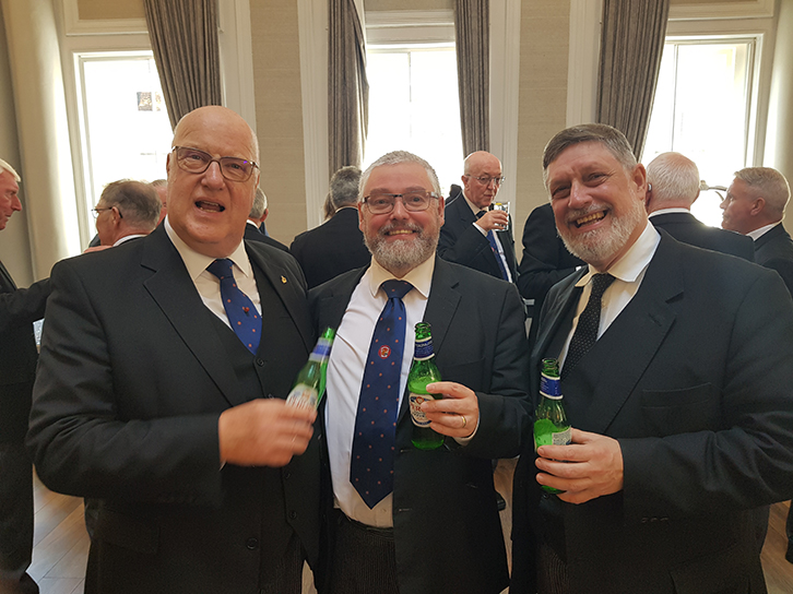 Just check out the pictures and you will see what a great time everyone has at Freemasons Hall in London and in the two watering holes opposite, The Pillars and the George, always a good place for a drink and a good old chin wag before setting off for the train. Had a great seat coming homing home, nice big table and comfy seats but just as the train started to move an unknown Mason suddenly plonked himself down opposite and I’m not kidding he didn’t shut up until, he exited at Stoke, if only it had been Milton Keynes, ah well you can’t win em all. | |