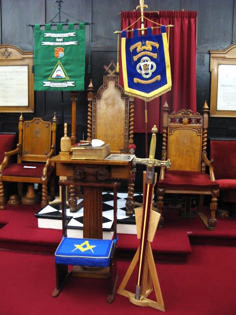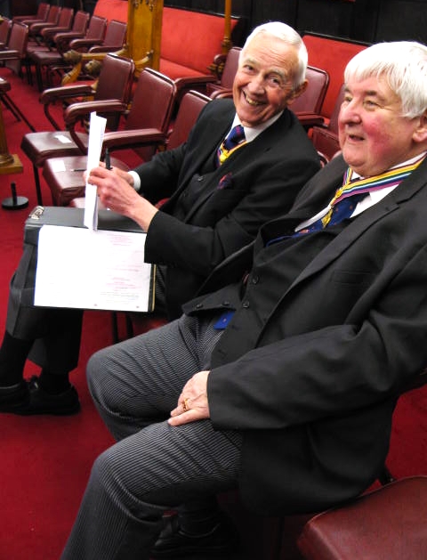 Walked round to the Hall, a member soon let me in, you are immediately facing a flight of steps which takes you upstairs, it does have a chair lift if needed, there you will find the Temple, Dining Room with a nice bar and robing rooms. Quite a few members and visitors were already standing around having a good old chin wag, this of course includes our PGM Keith who must be one of the most approachable PGM’s in the country. the atmosphere was buzzing. |