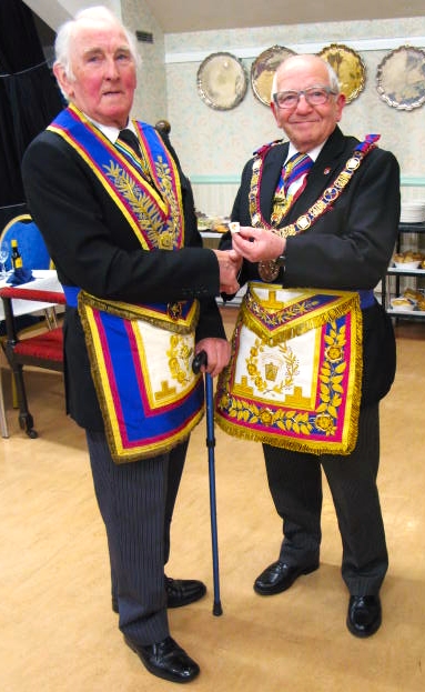 Before retiring from the Lodge Keith had one more surprise, this time it was for W,Bro, Peter Mason PGJD, a member of Garnett Mark Lodge, he had much pleasure in presenting him with a lapel badge to mark his 50 years as a Mark Mason, the actual meeting to present his certificate had already taken place but nevertheless he was delighted to receive the lapel badge from Keith which he said he would cherish. |