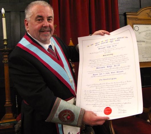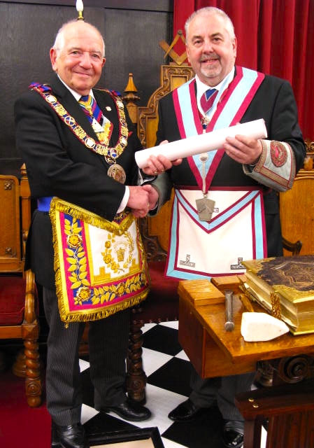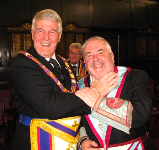The time had now arrived for a truly mementos occurrence to celebrate the Centenary of the Lodge, W.Bro. Andrew Dickinson PGSD the Provincial Grand Secretary read out a beautifully illuminated Warrant to commemorate the occasion and can be displayed at every future meeting. At this point normally all the members of the Lodge would be presented with a Special Centenary Jewel however they couldn’t be physically presented due to a delay in them being produced however the PGM asked for all the members of the Lodge to come forward and be congratulated individually which was a really nice gesture. I’m sure that the jewels will be worn with pride once they do arrive in Morecambe. |