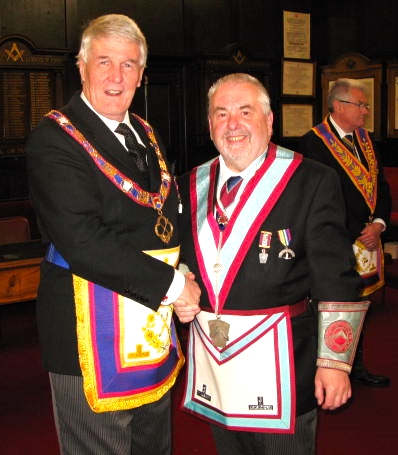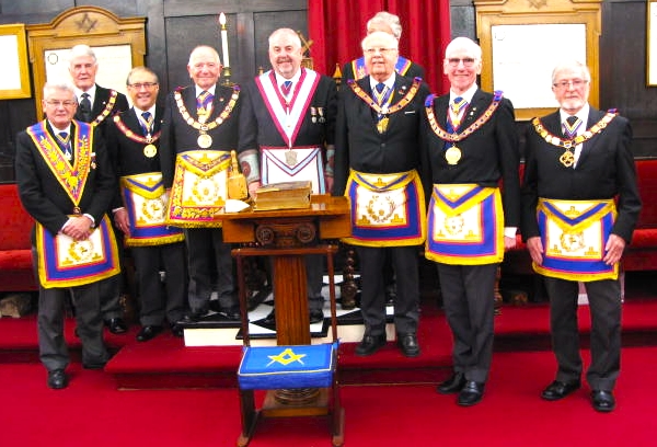 The special meeting commenced right on time at 6pm, several items were dealt with including the re-election of the W.M. Bro. Christopher C. Butterfield to stay in office for another year then it was time to receive the Provincial Grand Master R.W. Bro. Keith Alan Beardmore accompanied by Acting Grand and Provincial Grand Officers into the Lodge. |