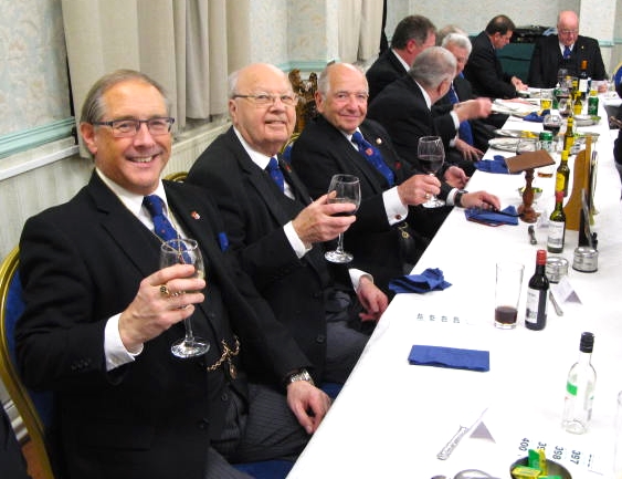 Now the time had come for the PGM to retire from the Lodge accompanied by Acting Grand and Provincial Grand officers, on leaving the Lodge we gathered outside and on closing re-entered for the usual photo session to record the event. Once the pictures were taken everyone made their way to get some liquid refreshment before taking up their allotted places for the Festive Board. |