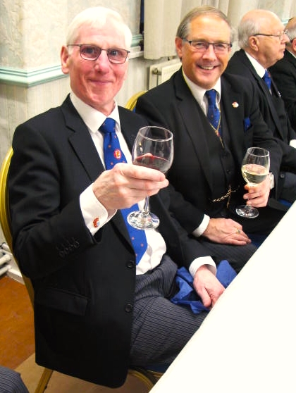 Once everyone had been congratulated the PGM with a twinkle in his eye said that he could see that the W.M. was itching to resume his seat (not) and was happy to return the gavel to him. |