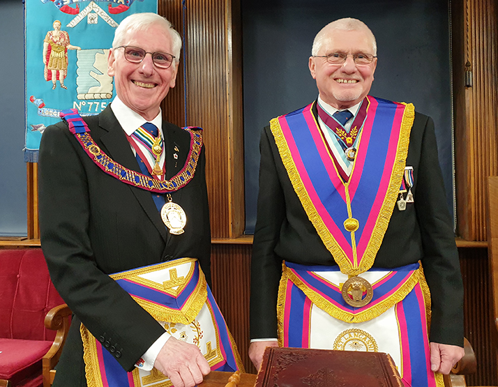 Asst. Prov. G. M. John Bicknell with Alan Eastham the WM