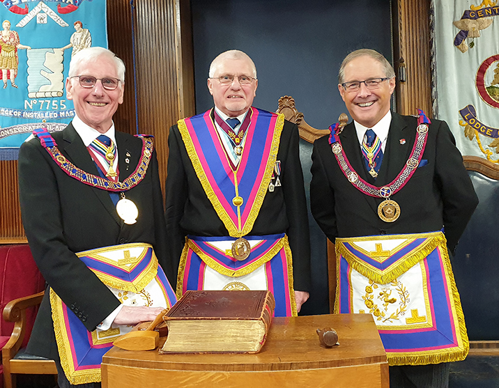 Then it was straight into the main business of the evening. Following the disruption caused by Covid 19, it was decided that the Master Alan Eastham, and the vast majority of the Lodge officers would remain in office. The four replacement officers were invested and all officers present acknowledge their reappointment. It is a point worthy of note that one of the new officers, Steven Thackrah, who is the son of the Secretary Tony Thackrah, was appointed as Assistant Secretary, do I see a plot unfolding here!