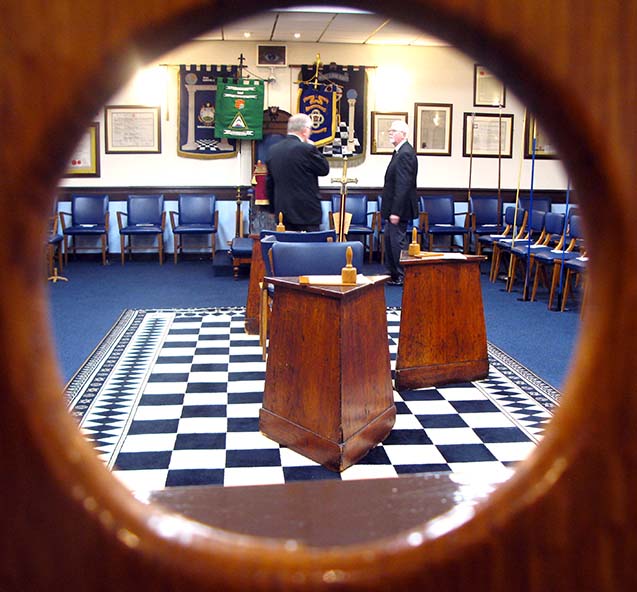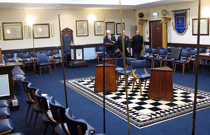 Once inside went for my usual mooch about to find what a really nice building it was, lots of space and rooms to get changed in, there was a table laid out with cups, milk and sugar and a really pleasant chap serving up tea and coffee. Before too long members and guests started arriving, I found our own PGM Bro. RW Bro. Keith Beardmore in company with a special guest for this once only meeting, RW Bro. Prof. Donovan K Wilson Asst Grand Master and the Dep.G.D.C. W.Bro. Andy Brown, along with our own Dep PGM VW Bro. Geoffrey Lee, Asst PGM W.Bro. Giles Berkley, VW Bro. John Bicknell and last but not least W.Bro. Mike Pinckhard the Prov Grand Secretary. This gave me the opportunity to get a couple of pictures before the meeting started. |