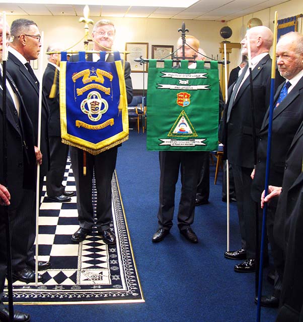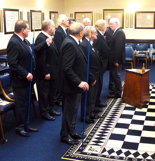 The meeting opened on time at 6pm and following some Lodge housekeeping the PGM Keith entered accompanied by Acting Grand and Provincial Grand Officers, the WM W.Bro. J.E. Champney G.I.G. (Chesh) welcomed the PGM and offered him the gavel which he said he would accept for a short time. Following on from the knocks on the door the Asst G M RW Bro. Prof Denovan K Wilson entered accompanied by the Dep G D.C. Andy Brown and was greeted on behalf of the W.M. and all those present by Keith. Once seated due salutations were given to the distinguished guests including Peter Connolly P.Pr.G.M. who was in attendance. |