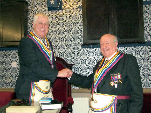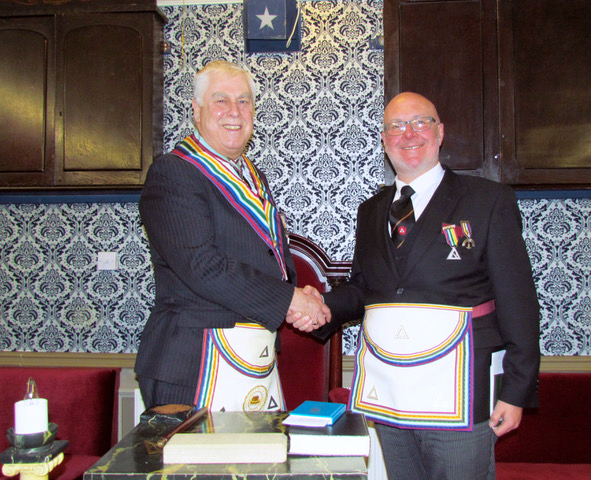Bro David William Johnson then invested his I.P.C W. Bro Stephen Keith Lyon as IPC, and then duly thanked him for his assistance in gaining the chair of St George Royal Ark Mariner Lodge 553.
