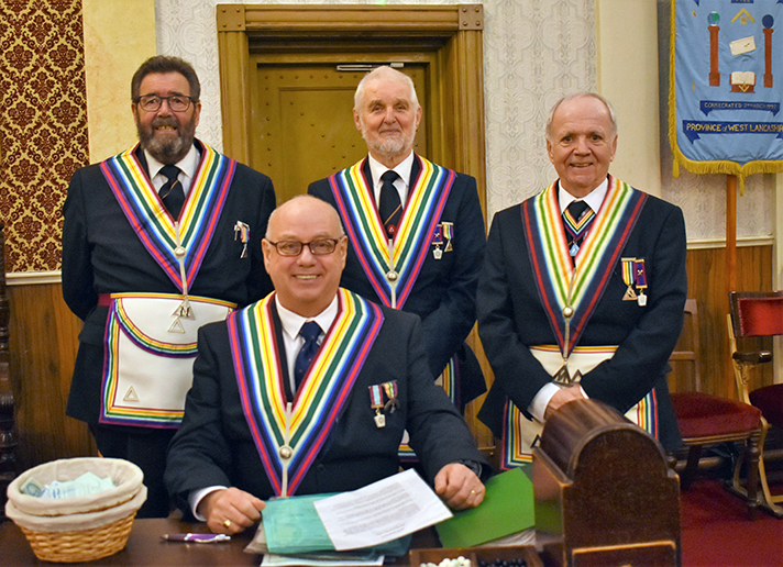 Called into action to be the representative of the PGM was Ulverston resident Stuart Brackstone who was able to witness Phil Burrow being installed into the principal chair in fine style. | |