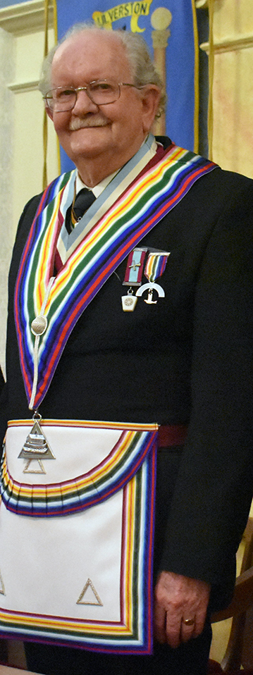 Phil had been presented for installation by Jim Richards. They are cousins and Jim is responsible for introducing Phil to freemasonry and subsequently to the RAM degree, or as Phil puts it “Jim is to blame.” | |