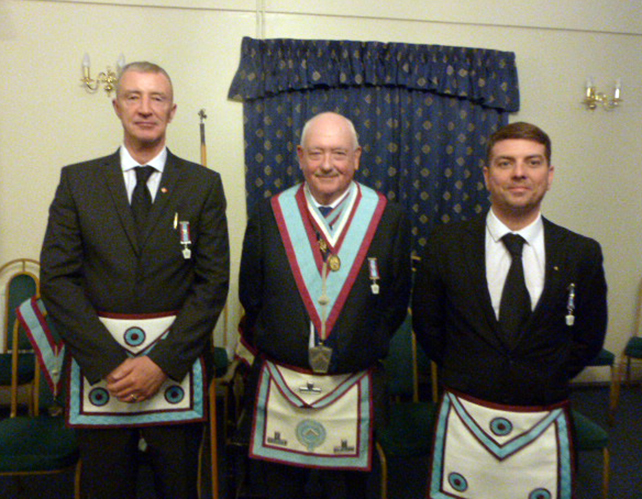 With the Installation ceremony over WBro Alan Fairhurst brought the congratulations of the PGM to WBro Doug Lace on taking the chair for the first time and in what is the Lodge’s Centenary year. WBro Fairhurst also congratulated WBro Mike Cunliffe on the way he had installed WBro Lace. With the Lodge closed in due form it was then time for dinner. A double advancement and an Installation ceremony done in just under three hours and not being late for dinner must be regarded as successful night. At the festive board WBro Alan Fairhurst congratulated the Master on his own behalf and also congratulated WBro’s David Anderton and Steve Lyon on the Grand Rank promotions.