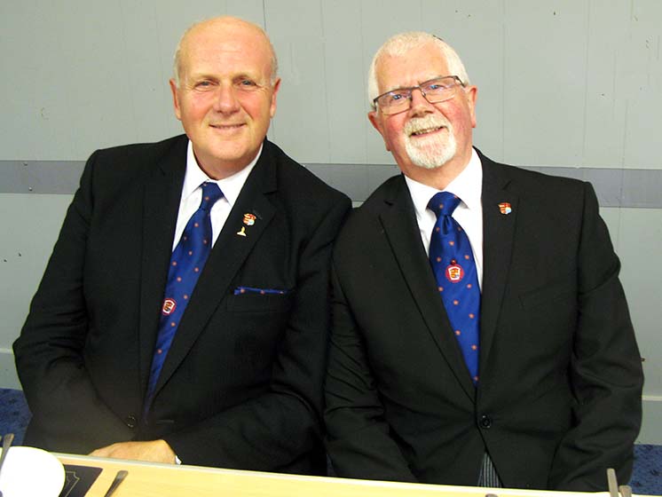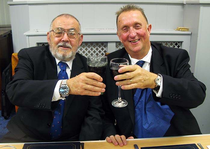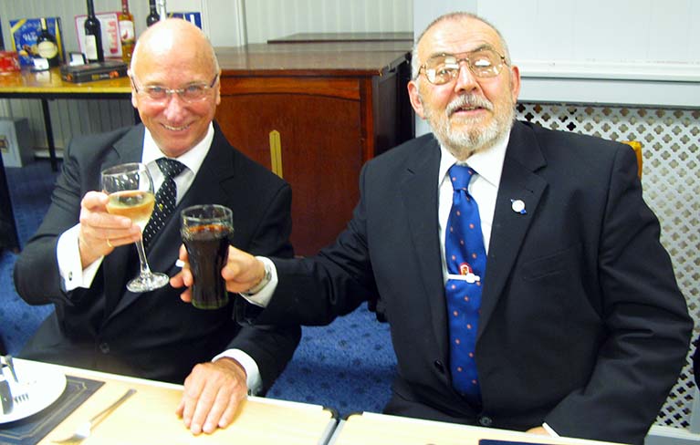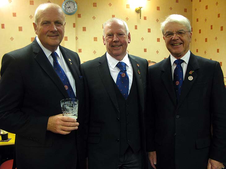 The meeting commenced on time at 5.45pm and following quite a lot of housekeeping the PGM RW Bro. Keith Alan Beardmore entered the Lodge accompanied by Acting Grand and Provincial Grand Officers, the WM Bro. Tom Egan offered the gavel to Keith who said that on this occasion he would accept it for a short time. The PGM asked the Provincial D.C. W.Bro. Arthur Robinson to present W Bro. Jeff Smith and W.Bro. Dennis Smith to the pedestal where he had much pleasure in promoting both of them to the high office of PPrGSW’s. Keith then had much pleasure in presenting W.Bro. Brian Burgess Dicks Prov G.J.O. with the special Royal Ark Mariner Ambassador Jewel for his unstinting work in promoting the Degree. |