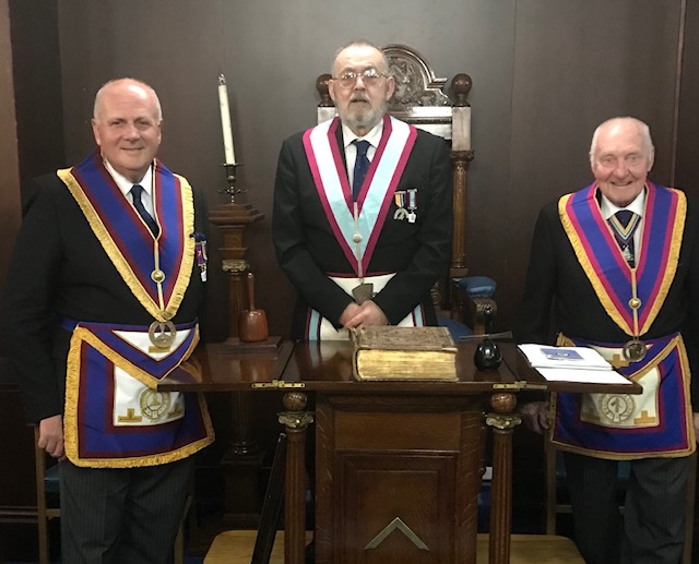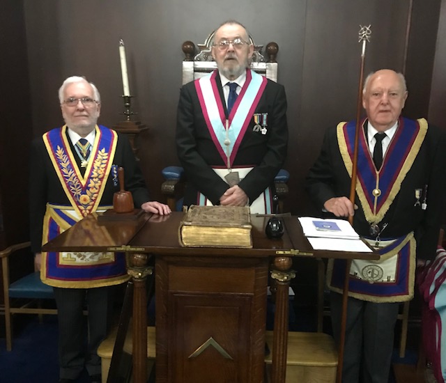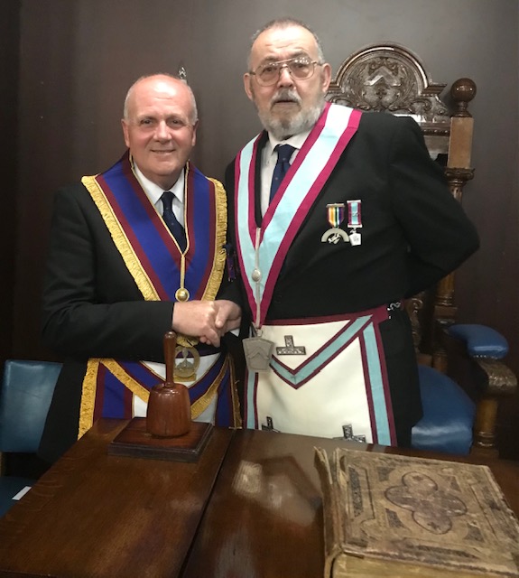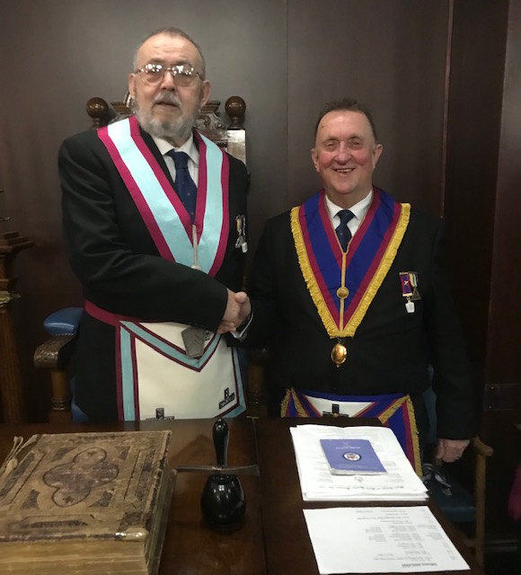 Brian then proceeded to install his successor Tom Egan in sterling style. Those below the rank of an installed master withdrew and the inner workings took place in faultless fashion. |