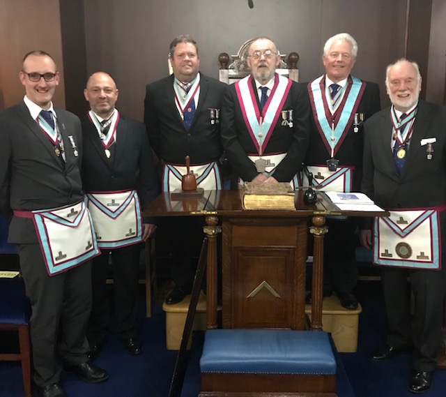 Despite this unexpected interruption the 32 brethren and the lodge’s guests were treated to a memorable installation at the hands of past and installing master Brian Burgess-Dicks. |