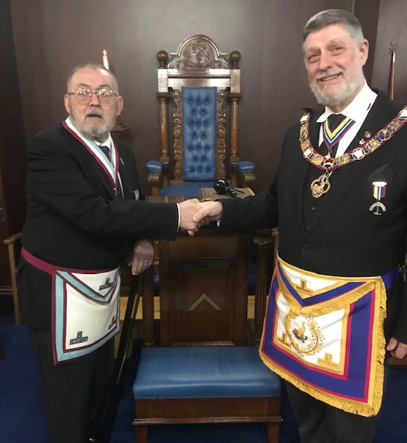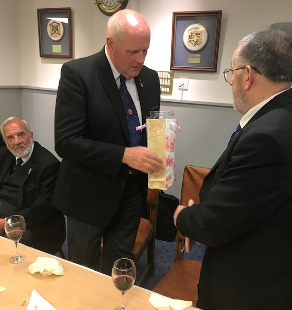 Tom Egan thanked him for his kind words and on apologising that there were no cheques to present David assured him that he knew that Wyre Mark’s forthcoming centenary had a pressing need for lodge funds. |