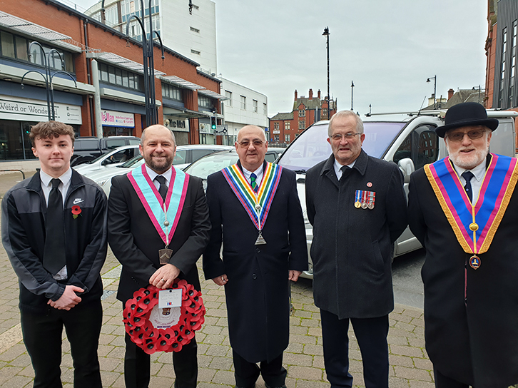 | A total of six brethren from Furness Mark lodge No. 36 joined the Barrow in Furness Remembrance Parade which proceeds from the Town Hall to the Cenotaph at the highest point of Barrow Park. |