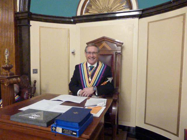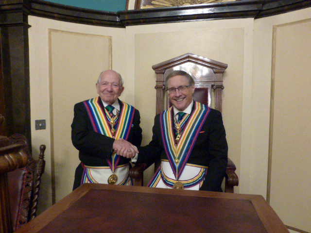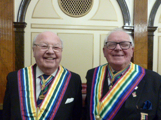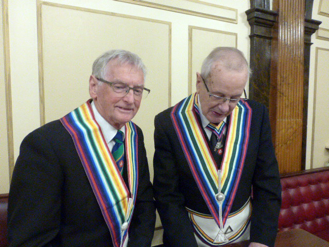 With the Lodge closed it was time for dinner, and as Andy had missed out on his meal selection last time round it was the same again. The meal was equally as good the second time around. In response to the toast to his health the PGM congratulated Andy on going in the chair. RWBro Keith also thanked VWBro Geoffrey Lee his service both in the roles of Provincial Secretary and for being his Deputy over the last few years. |