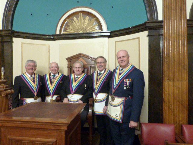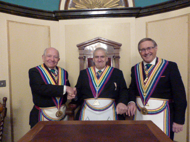 Also attending the meeting was the PGM RWBro Keith Beardmore and he was accompanied by the two new Assistant Provincial Grand Masters, VWBro Geoff Bury and WBro David Winder. The Worshipful Commander, WBro Giles Berkley, Deputy Provincial Grand Master opened the Lodge and then there was an In Memoriam for VWBro David Anderton who passed to higher service on 26th April. David had been the Lodge Chaplain for the past few years and was well known in the Mark and Royal Ark Mariner degrees, as well other orders. |