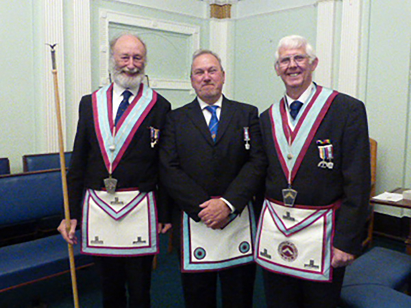 The Senior Deacon, WBro Geoff Roberts had to save the candidate from three grumpy Overseers; WBro’s, Dave Crowley; Jorge Perez and Alan Parkinson and two blood thirst Wardens; WBro Derek Gaskell, (visitor) and WBro Steve Walls. It all turned out fine when WBro Chris Walls took over the chair from the WM and richly reward Bro Ray Parr. It was an enjoyable ceremony and congratulations must go to WBro John Bruffell; WBro Chris Walls and WBro Geoff Roberts. |