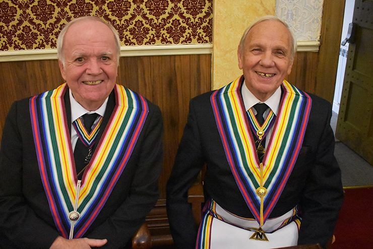 Furness RAM stalwart Alan Jones was on hand to present the working tools of the order and also explain the steps. Secretary Kieron Mullan ventured from behind his desk and onto the floor to demonstrate and explain the signs of the order. Both performed their parts with the ability and quality you would expect from them. | |
