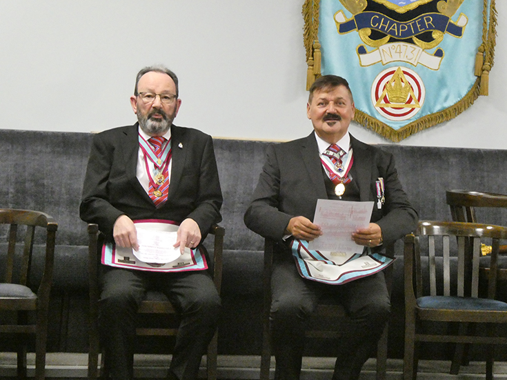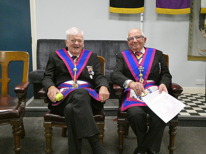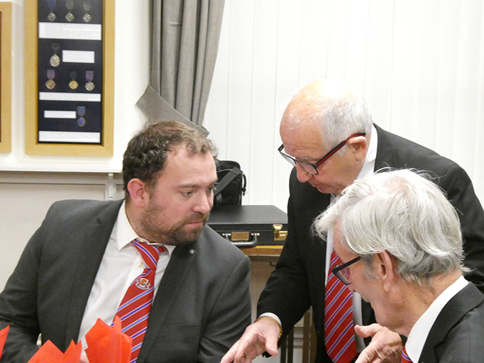 The WM retook the chair and asked the RWPGM if he would present a Grand Lodge certificate to Bro. Martin Bleeker, a recent advancement into the Lodge. The RWPGM duly obliged in fine form.