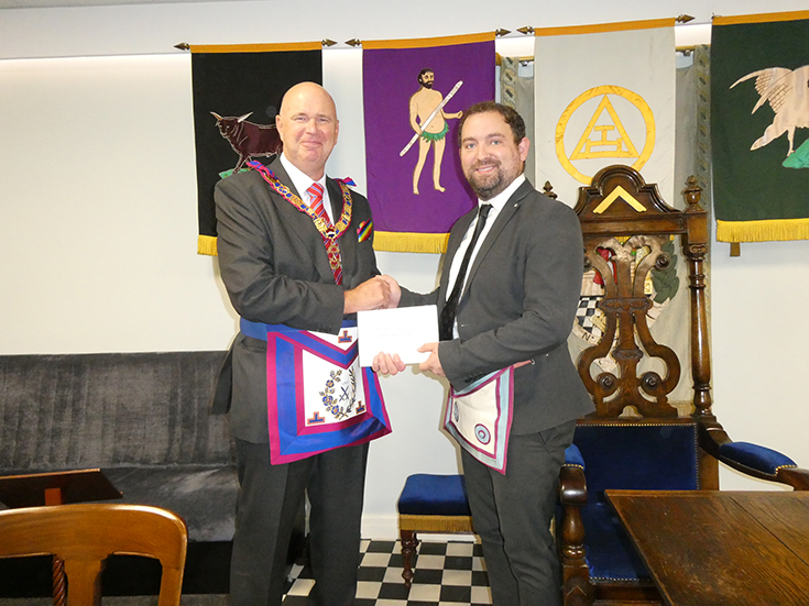 WBro. Cross presented our newly advanced Bro with a welcome letter from the RWPGM.