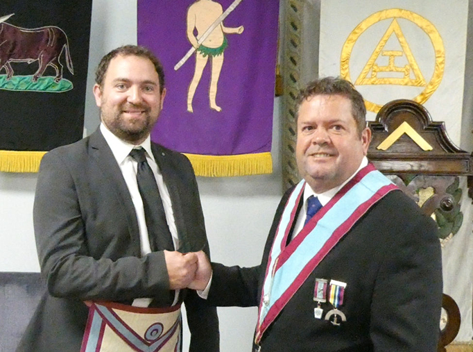 The WM Bro. Colin Goodwin opened the meeting and worked through the business up to the ballot for a new member. The ballot proved successful, and the WM asked WBro. Craig Scott to take the chair for the ceremony of advancement.