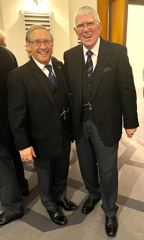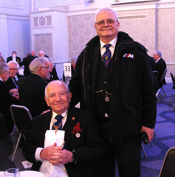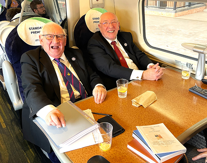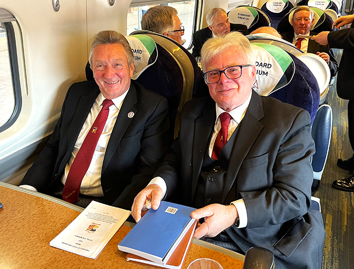 Set off to catch the 10.13 train from Piccadilly to Euston, a trip I look forward to but it always feels a bit lonely on my own, however on this occasion I was checking the train times board when I spotted a man wearing a Mark Grand Stewards Tie, just like mine, he was in fact the Deputy Provincial Grand Secretary for East Lanc’s Mark, W. Bro. Malcolm McCarthy. |