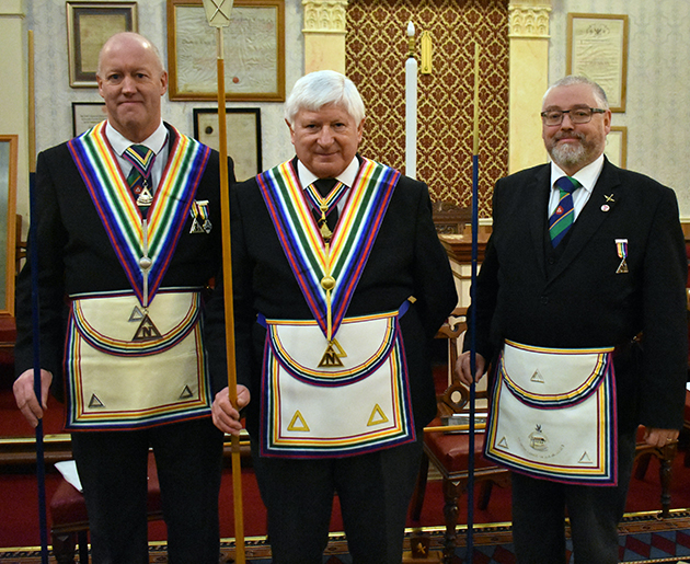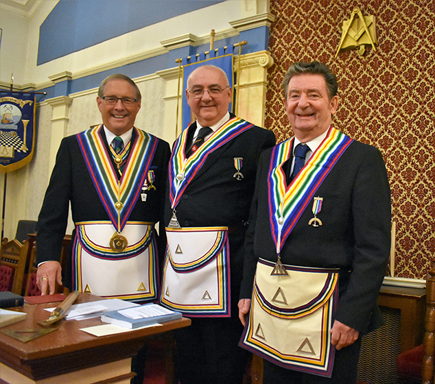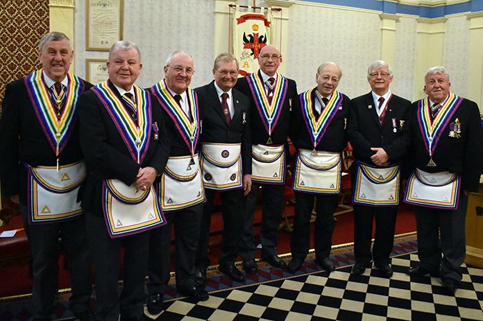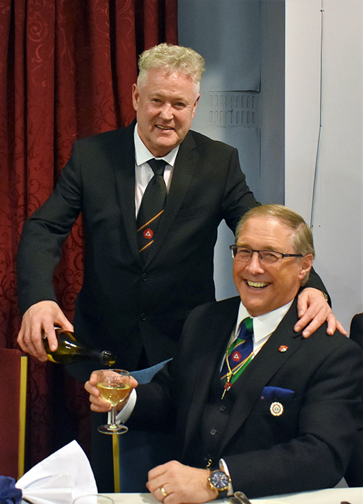 There were a good number of members of the degree present to witness the work of Phil as he installed Ian. The principal guest, representing the RW PGM, was APGM Giles Berkley. He was escorted by provincial deputy director of ceremonies Tony Farrar and assistant David Rigby. |