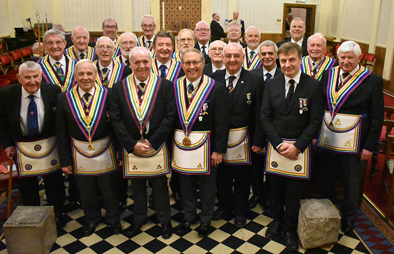 In addition to the West Lancashire RAM members there was an octet of visitors from Duddon Mark Lodge in, as they keep informing us, the “glorious” province of Cumberland and Westmorland. There is a very strong link between masons in the Furness area and those in Millom with the Mark and RAM degrees following that tradition of mutual support. |