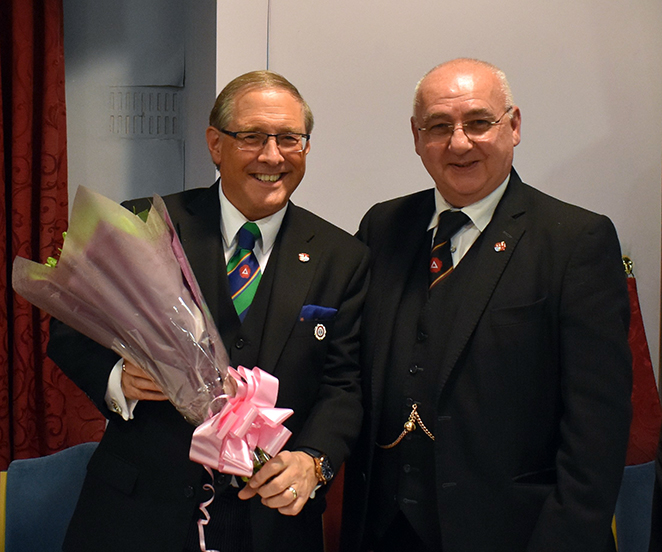 In replying to the toast to his health Ian thanked Giles for his attendance and added, “ thank you for your great contribution to the evening especially the delivery of the exposition which added to the enjoyment of the ceremony.” This was greeted with approval by all who had witnessed it. Ian later presented Giles with flowers for his good lady. |