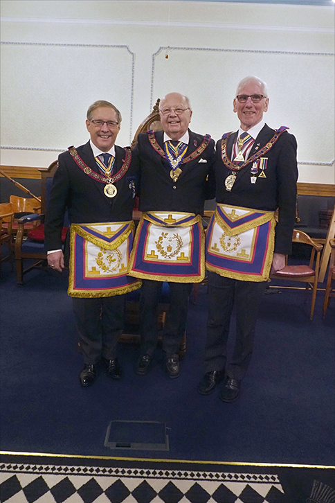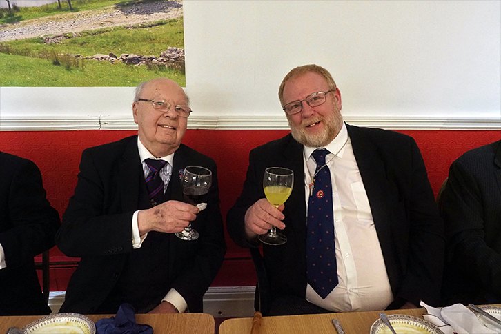 However, the lodge was opened for this 60th anniversary by Andrew, with his father, Roger Stansfield, as Immediate Past Master and the usual items of business were adroitly dispatched so as to hasten the entry of the principal guests. These were Deputy Provincial Grand Master Geoffrey Lee and both Assistant Provincial Grand Masters, Giles Berkley and John Bicknell.