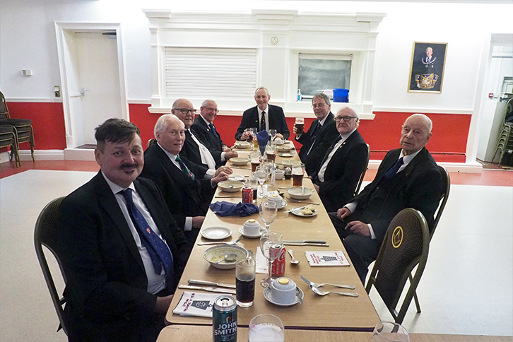 At the first rising John Bicknell congratulated the lodge on its anniversary and said what a pleasure it had been for the grand officers to attend and witness such an enjoyable meeting. Andrew responded on behalf of the lodge members saying that it had been an honour and delight to receive such a significant visitation of senior Provincial grand officers. Responding for the Provincial grand officers, Stuart Sager echoed the congratulations to Shaun and Chris on their forthcoming promotions and thanked the WM for his enjoyable presentation.
