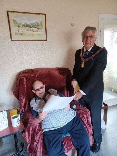 On Monday afternoon the 12th June 2023, I along with R. W. Bro. Tony Harrison, P.G.J.W., P.Prov.Dep.G.M. & Alan Gregory P.Prov. G.J.W. spent a very pleasant afternoon visiting Jim Pearson, P.G.J.D. |