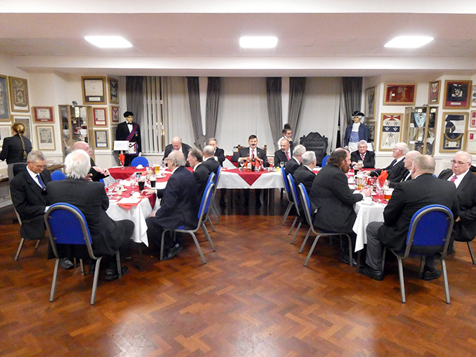 The Lodge was closed and the Brethren assembled in the bar for refreshments and the festive board. |