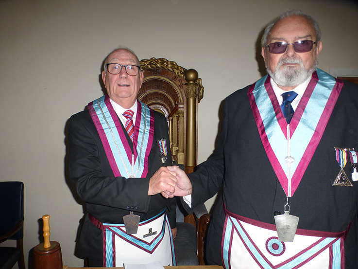 Then it was over and the Lodge was closed in due form. In response to his toast VWBro Geoff Bury again congratulated the WM on taking the chair and WBro Neil Cooper on his ritual. | |