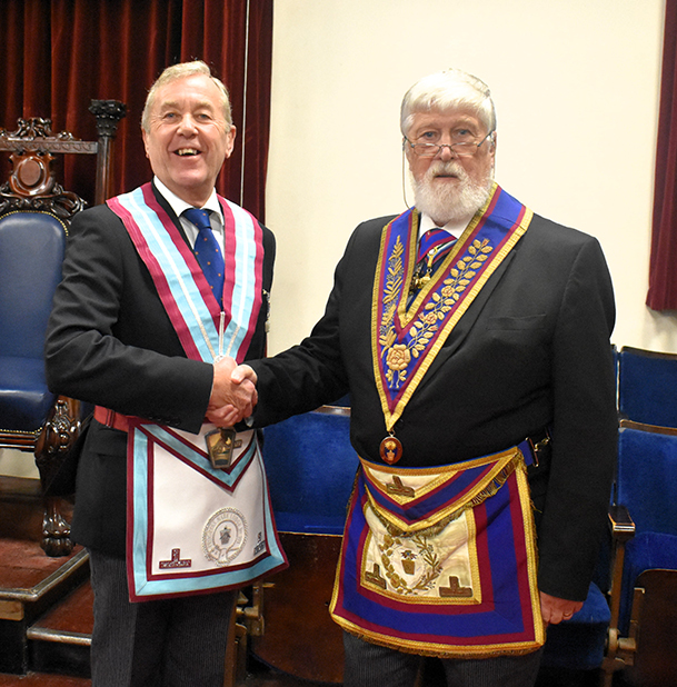 Alan Whittle with lodge grandee Glyn Jackson Davies P Asst.PGM. |
