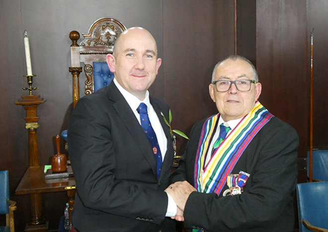 Bro Kevin Peter McCumiskey was duly elevated with great work by the officers of the Lodge. The SD and JD conducted him around the Lodge in an efficient and dignified manner. WBro Fairhurst (DC) carried out an explanation of the signs of the degree. WBro Bennett (visitor) the working tools and Bro Rhodes the steps. |