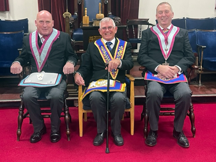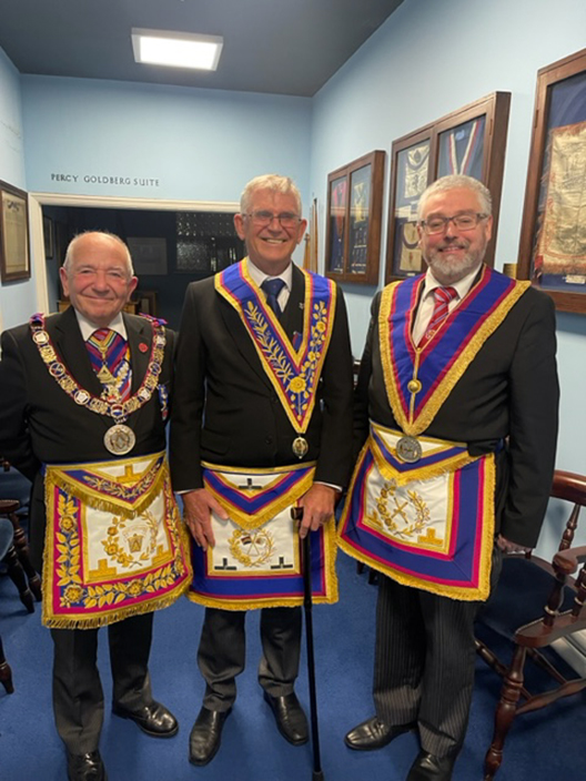 The Provincial Senior warden WBro Mark Barton led a small team of acting officers. W. Bro Kevin Chicken Ass Prov Secretary read the Grand Lodge and Provincial Grand Lodge certificates before they were presented to W. Bro. Peter. |